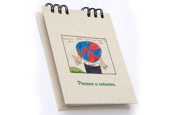 Cadernos Especial com Aba para Fechamento e Elástico, caderno médio, caderno capa dura, revestida em papel couchê 150gr, impressão 4 cores, acabamento capa/contra-capa: laminação e empastamento, miolo com 100 folhas em papel off-set 75gr, impressão 1x1 cor, layout exclusivo para cada cliente, fechamento com espiral metálicos duplo anel, wire-o, medidas: 18x25cm. * Fita marca página opcional.